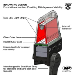 An inner and outer lens design helps to shape light output, producing long-range visibility when viewed directly from the rear but also provides ample surrounding light to the peripheral, making the Sentry™ Aero 260 visible from nearly any angle.