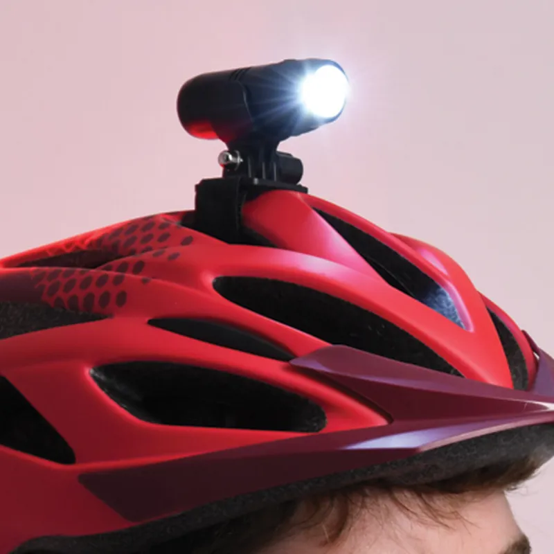 Comprising a 50 Lumen front light and 15 Lumen COB rear light in a single alloy body, this compact lightweight helmet-mounted light packs a big punch. Front and rear lights are independently controlled and the universal mount will fit any cycle helmet.