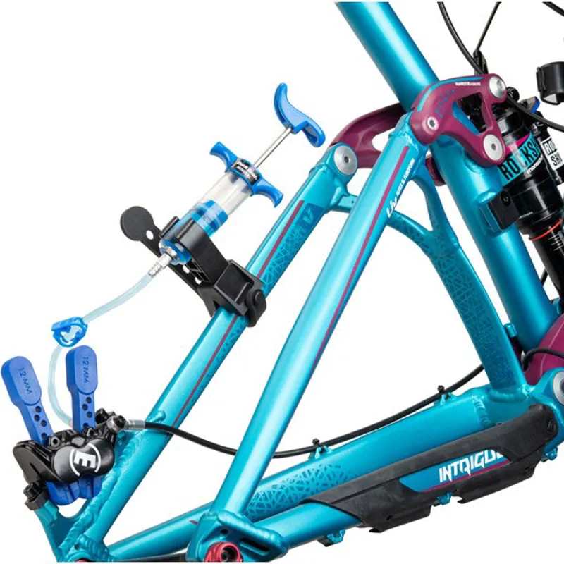 - Includes two syringes, hoses with shutoff clips, multi-size bleed blocks, bleed funnel and a unique attachable syringe mount