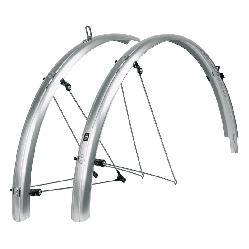 A brilliant performance! The SKS BLUEMELS BASIC mudguard set can not only be perfectly integrated onto the bike but also reliably protects against dirt and spray water. Thanks to the flexible sandwich construction, in which ultra-fine aluminium strips are embedded in a plastic coating, the mudguards are extremely robust, rigid and corrosion-resistant.