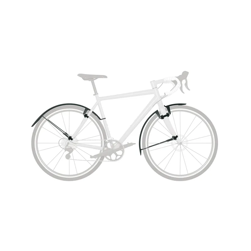 At the front, protection is enhanced with a new dual-height front spoiler, which deflects water and mud onto the wheel and downwards, away from the rider’s face. The rear mudguard utilises an innovative telescopic extension for greater coverage near the seat tube, and everything is held firmly in place with an all-new rubber fastening system to suit a multitude of frame designs, including integrated recesses for brake or gear cables as required.