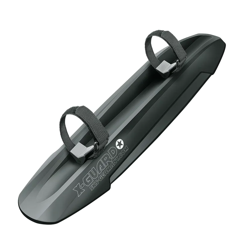 The X-GUARD made of high-performance impact-resistant plastic is a universal mudguard for any wheel size, which is attached to the downtube by means of two straps. The mudguard offers complete all-round mud protection especially for fat bikes and bikes with oversized tyres.