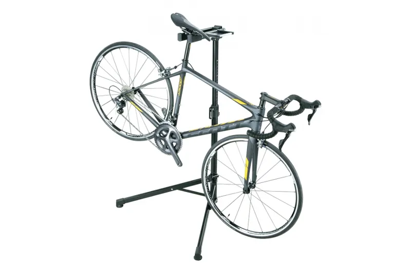 This simple and easy-to-use workstand does not clamp the frame, which may scratch or damage the finish. Simply hang the bike by the seat post or seat tube from the jaws.