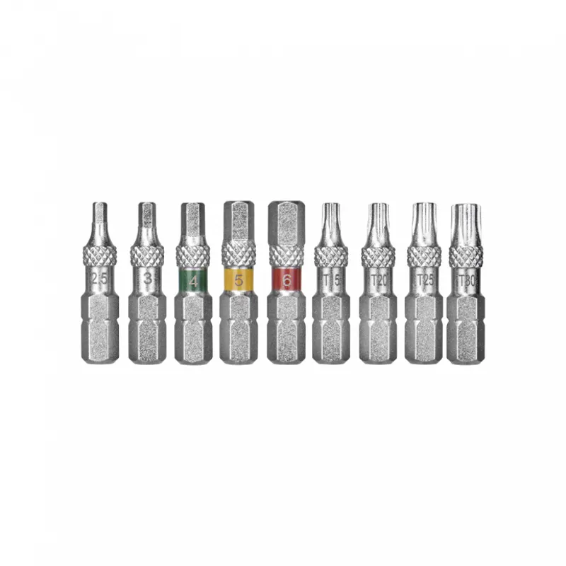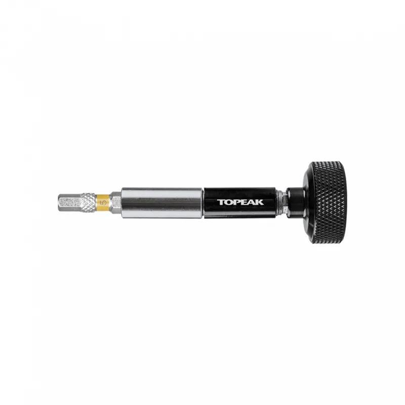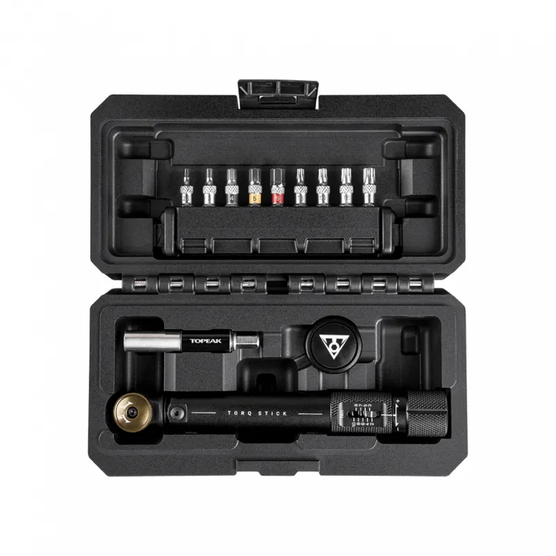Torq Stick 2-10Nm Pro version. Torque wrench with an adjustable preset range of 2-10Nm features a standard hex drives reversible ratcheting head. Includes magnetic bit holder for adding leverage, fingertip bit holder for narrow space, and 9 tool bits with a generous 30mm length for reaching tough bolt locations. Knurling on the individual tool bits provides additional grip when changing or removing from the organizer and ratchet tool head. Fits neatly into a storage box.